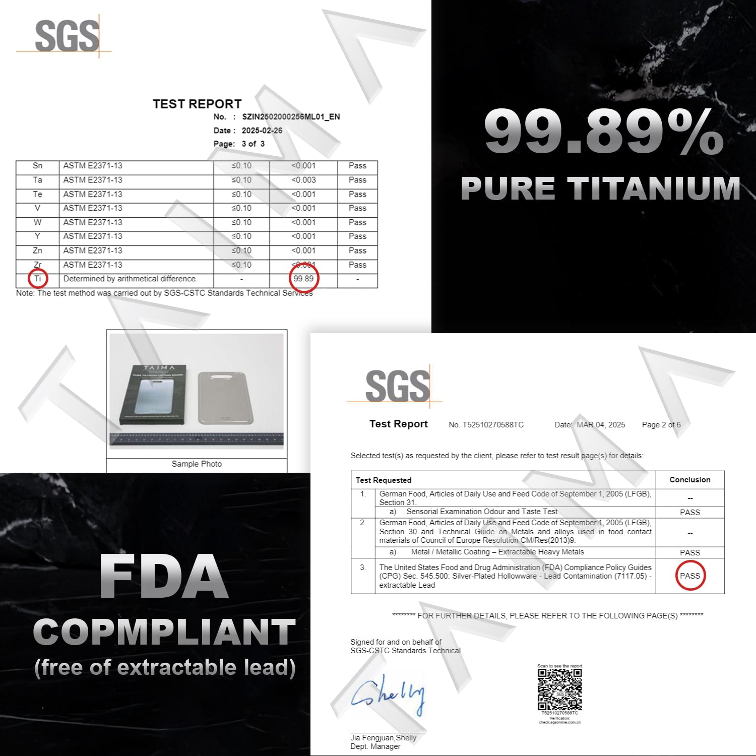 The Original & Only Real Titanium Cutting Board on the Market. Taima® is the world's first and only officially SGS-certified & FDA-compliant board, guaranteed 99.89% pure titanium. Cook with absolute confidence, knowing every meal is protected from toxins & bacteria on the safest food-prep surface available.